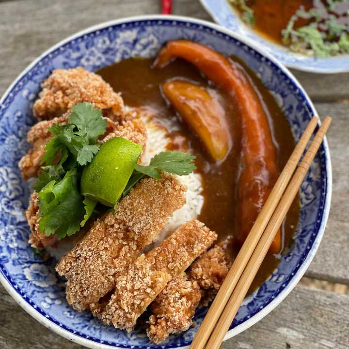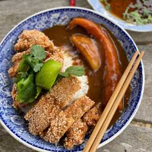 Crispy panko-breaded free-range chicken with that rich, thick curry sauce. Amazing.